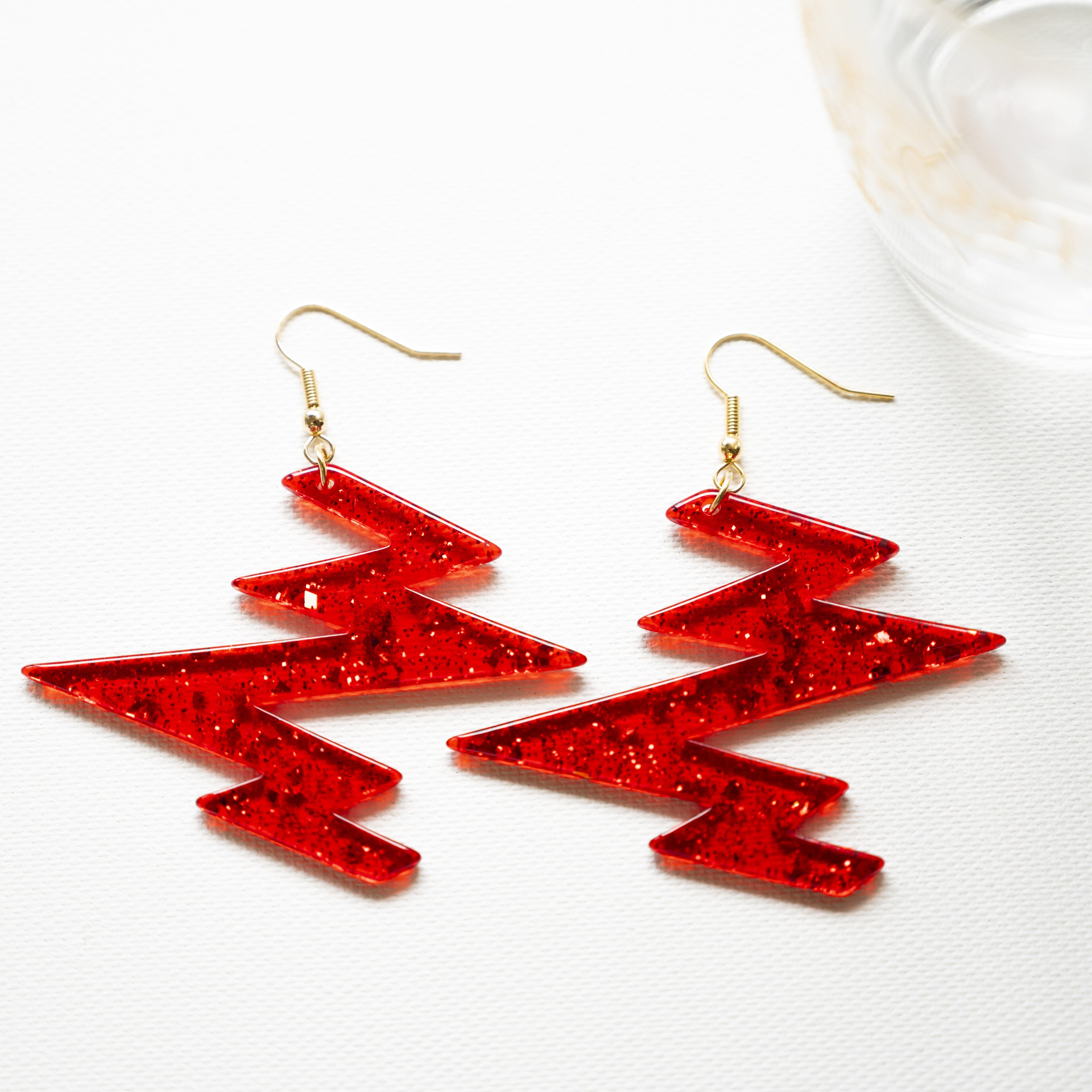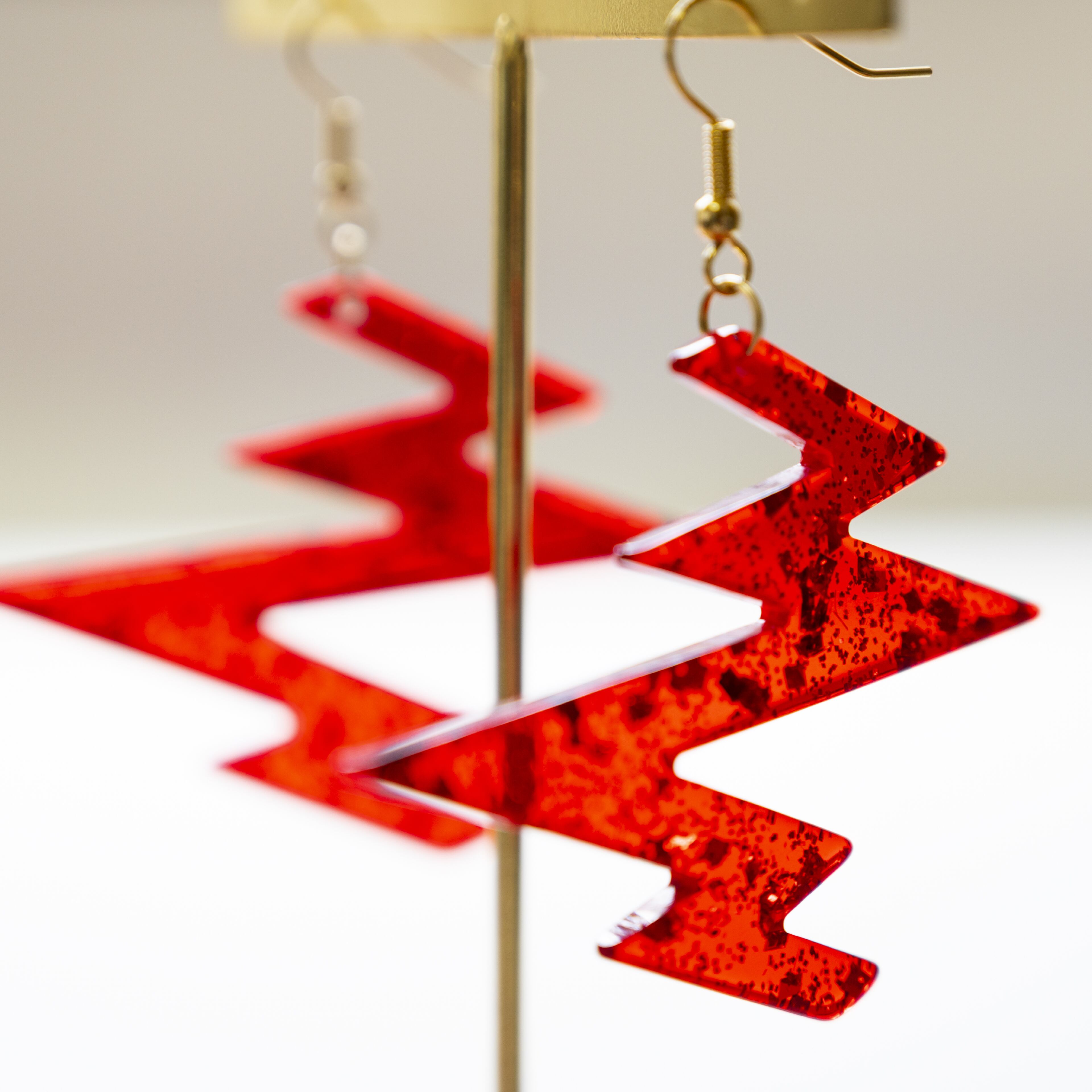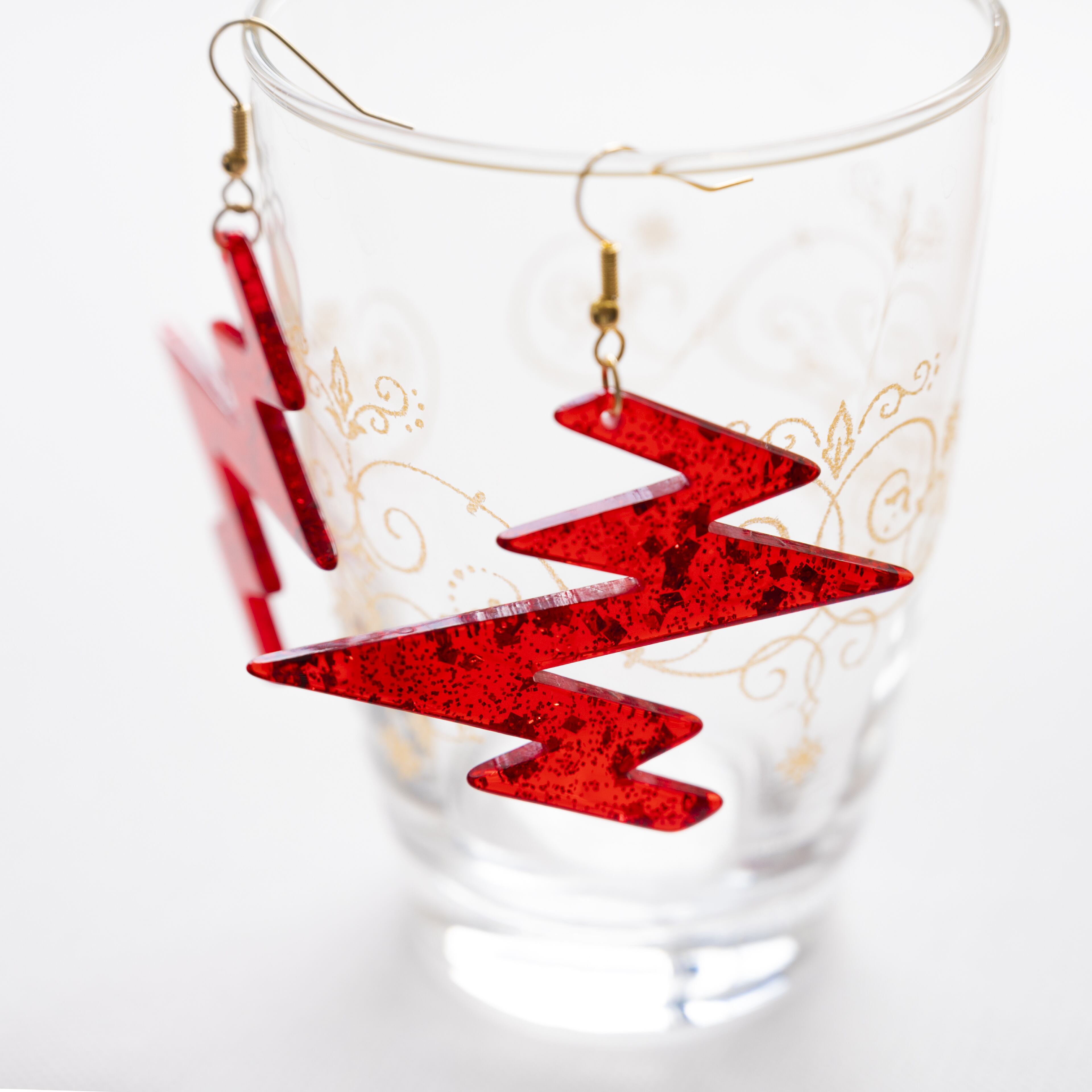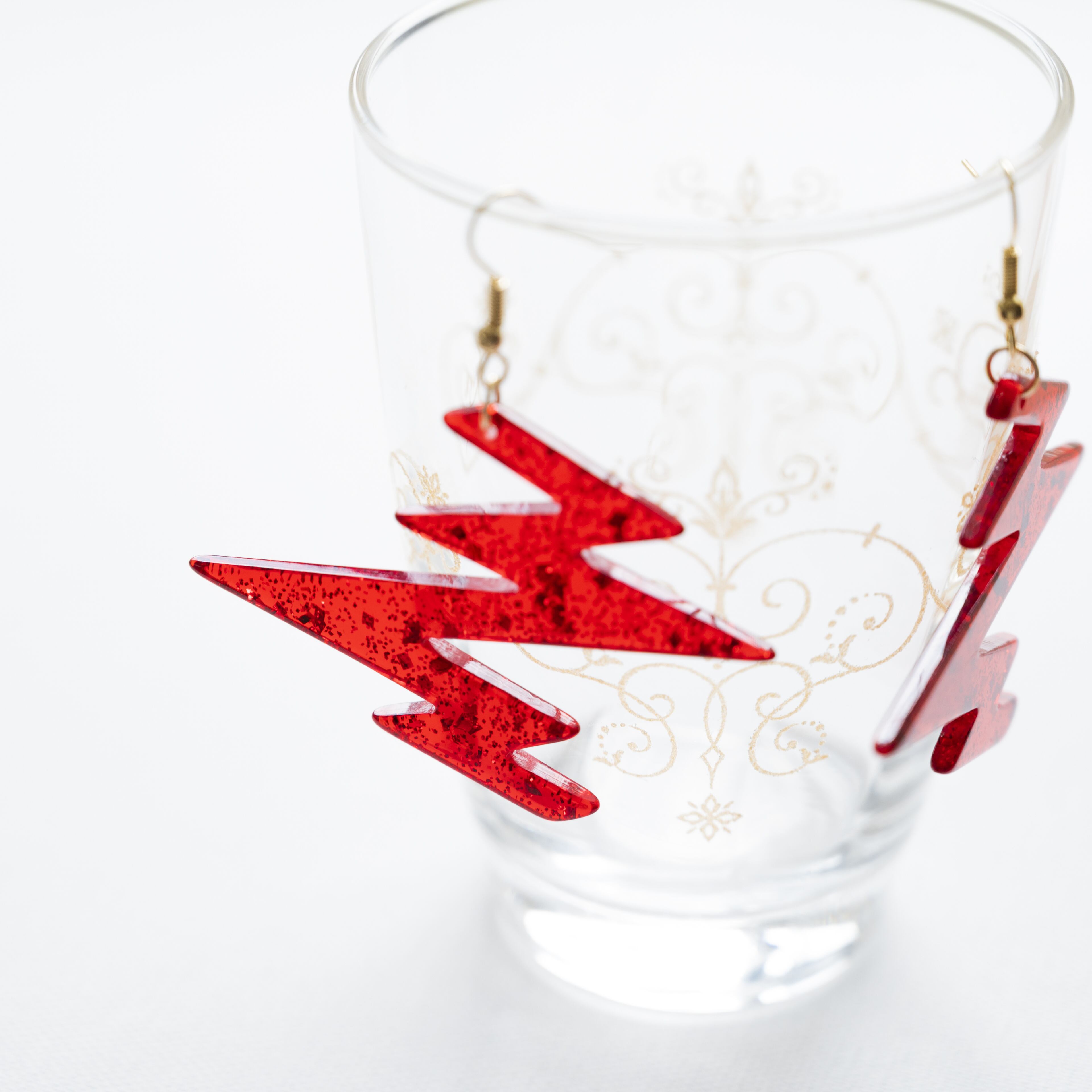 半透明の赤いアクリル板にゴールドのラメが入っています。