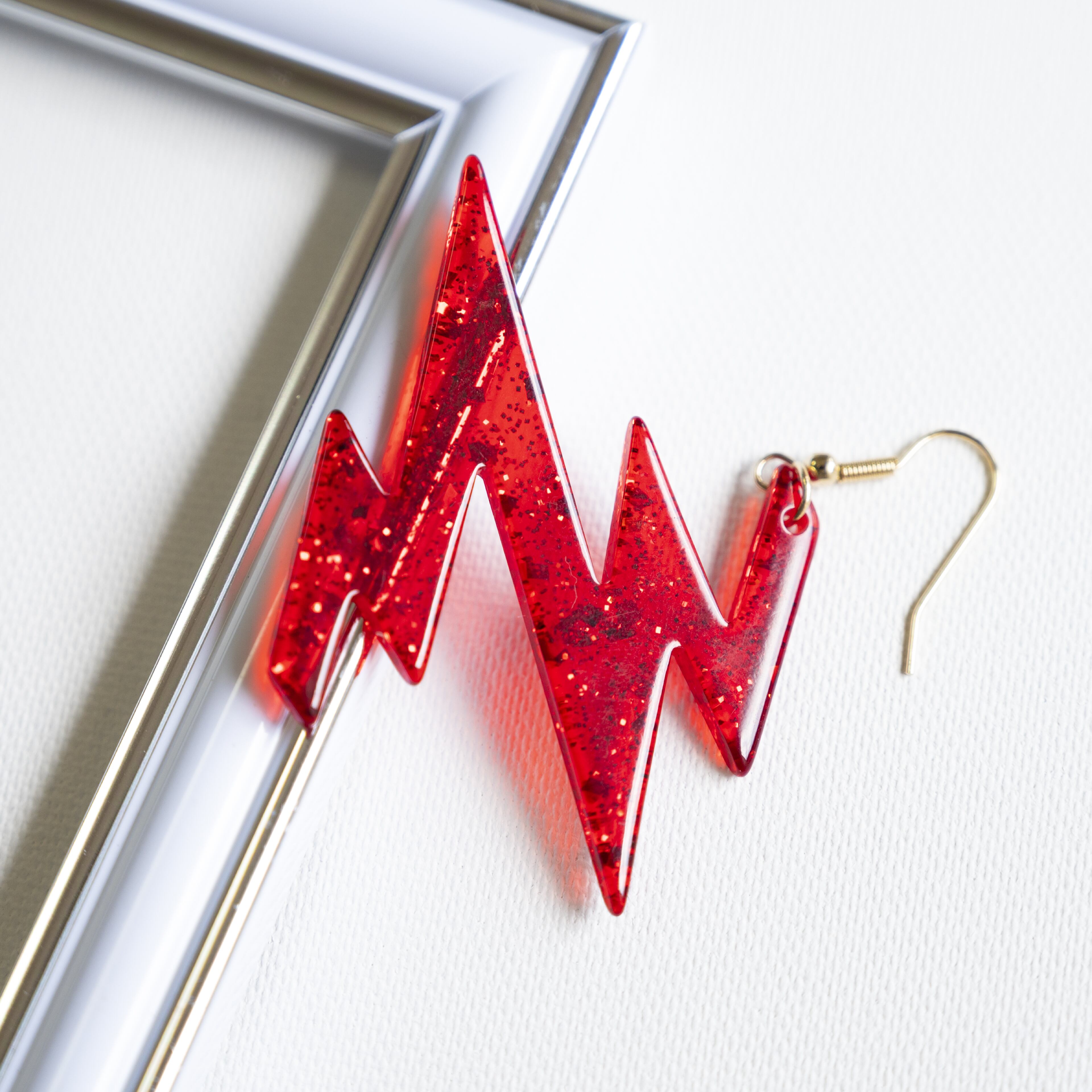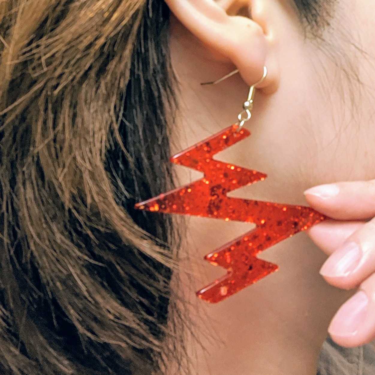 アクリル板部分の大きさは縦5cm×横6.5cmくらいの大き目のピアスです。